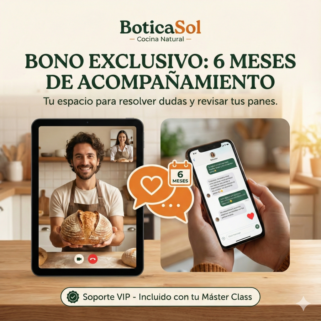 Es un taller claro y práctico para aprender desde cero: crear y mantener tu propia masa madre, entender tiempo,temperatura,pH, y dominar autólisis, pliegues, formado y horneado en horno de casa. Incluye más 32 recetas y materiales descargables, más acceso a comunidad y sesiones de preguntas para que tus panes salgan bien de forma consistente.